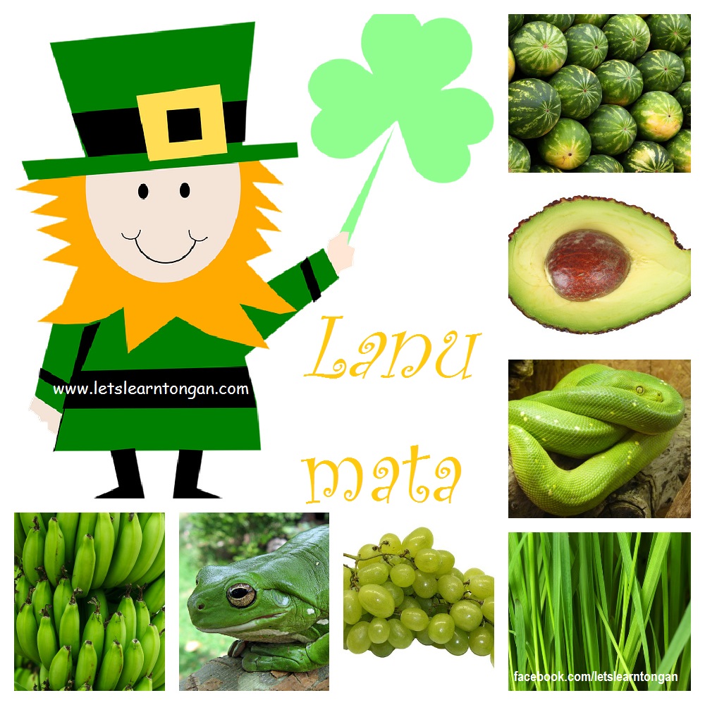 St Patrickʼs day brings todayʼ theme: Colour Green, what can you see around you with the colour green. Ko e tau lēsoni ki he ʻahoʻni fekauʻaki mo e lanumatá. Ngaahi meʻa kehehe ʻoku lanumatá.